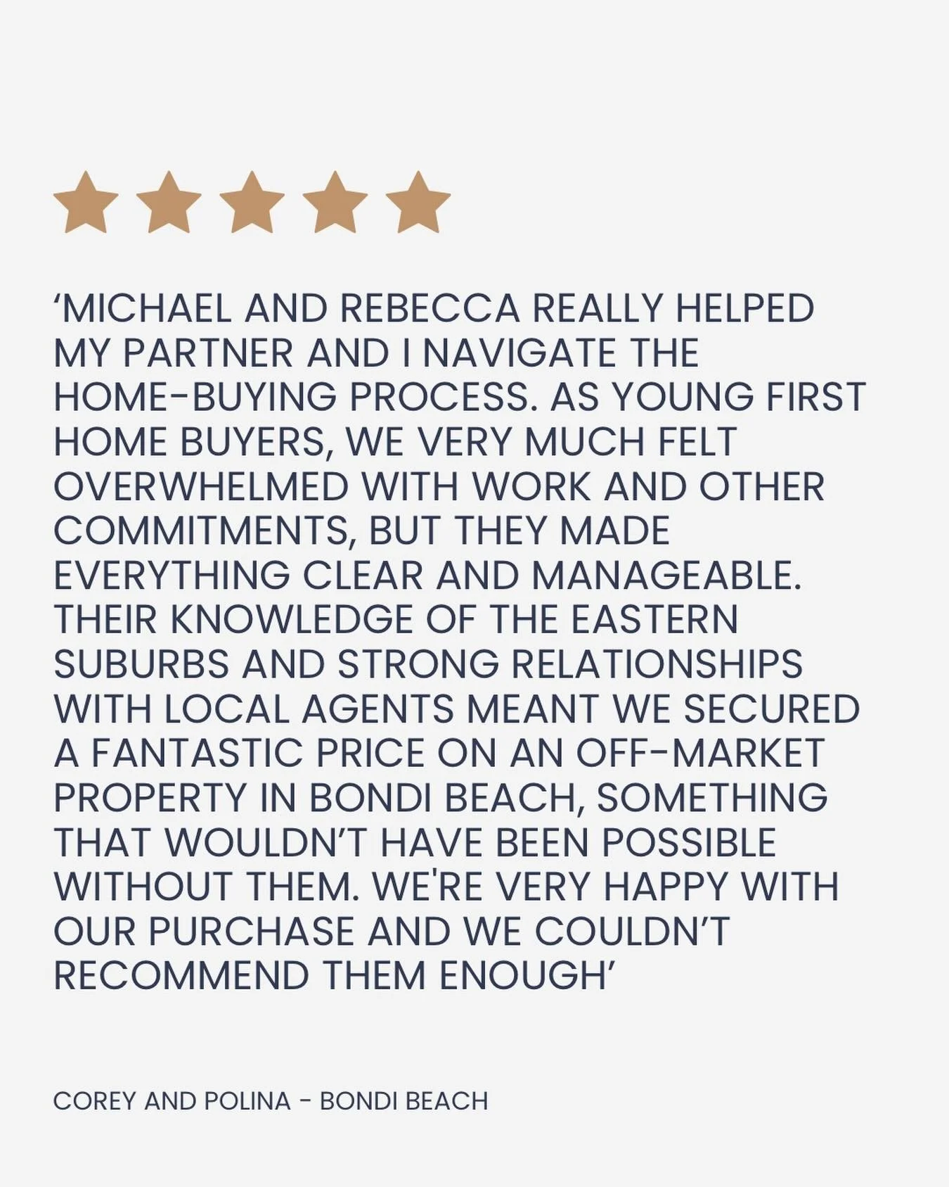 85% properties purchased off market • 50+ 5 star reviews • 22 average days from engagement to purchase • $2.5 billion worth of valuations completed this year •